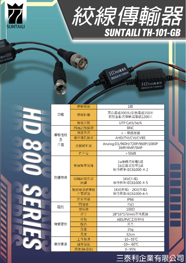 執行標準:IEC61000-4-51KV(差模)、2KV(共模)