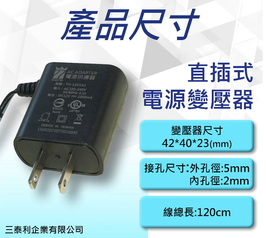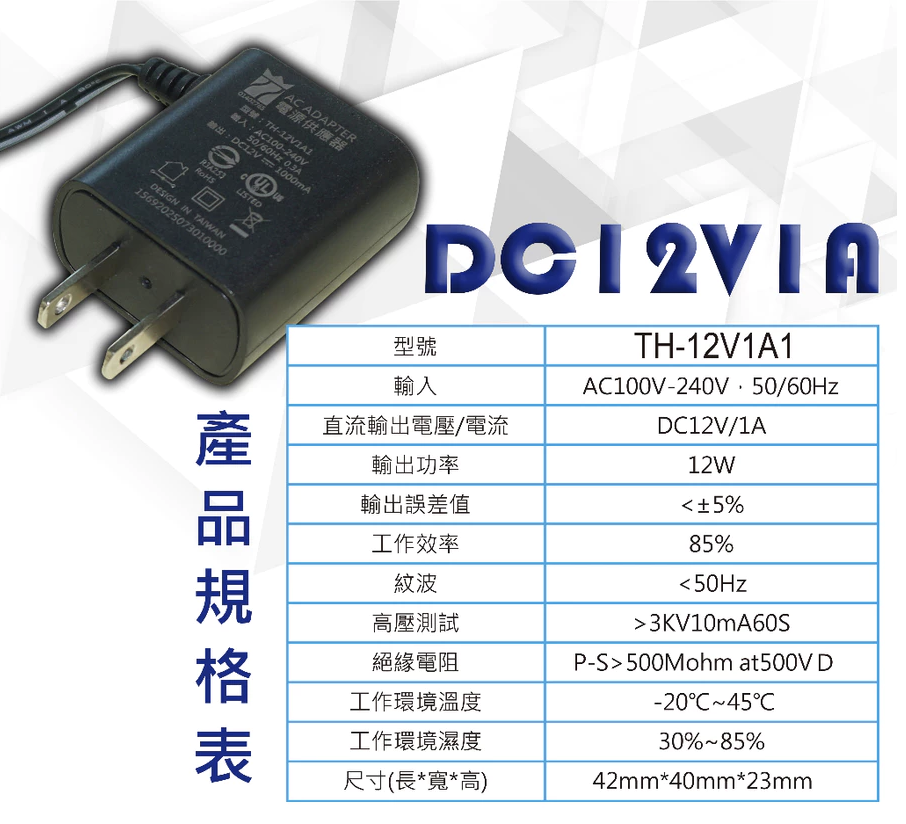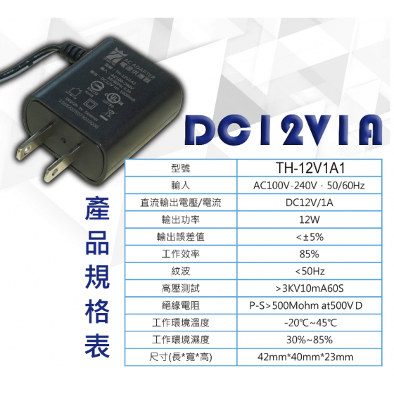 輸出電壓/電流DC12V/1A