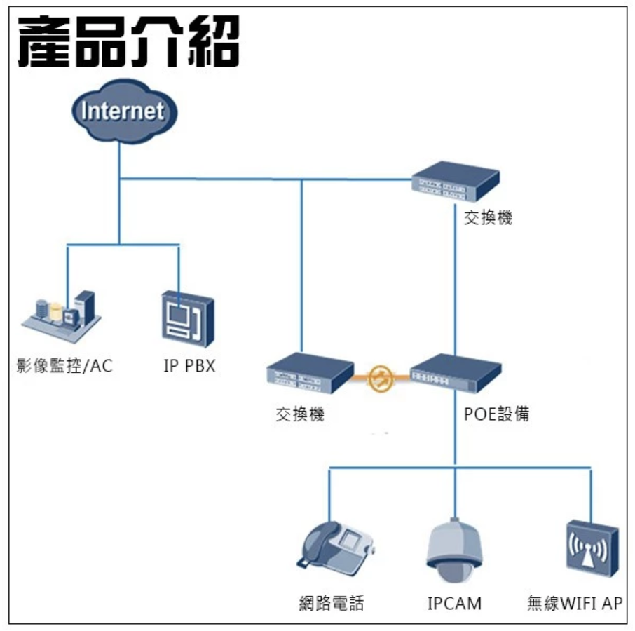 *支援通過Cat5e/6標準UTP網路給無線(AP)和網路攝影機供電
