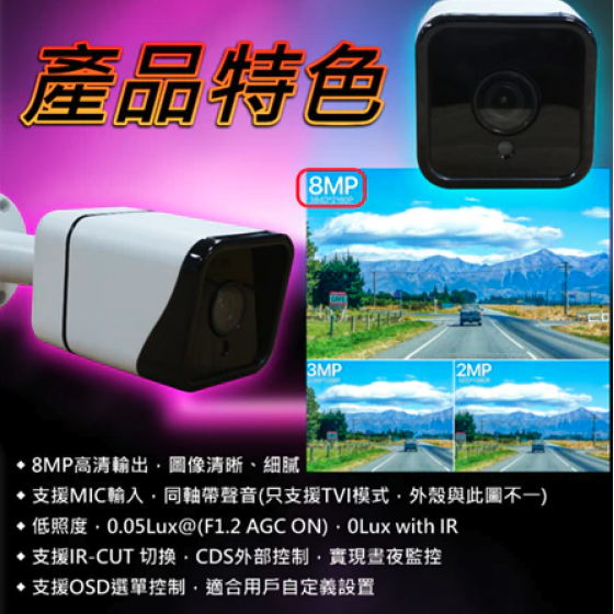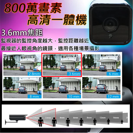【監控玩家】800萬畫素 AHD 高清一體機 彩色 紅外 攝影機 8MP 焦距 3.6mm 攝影機