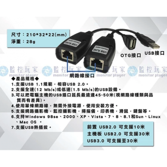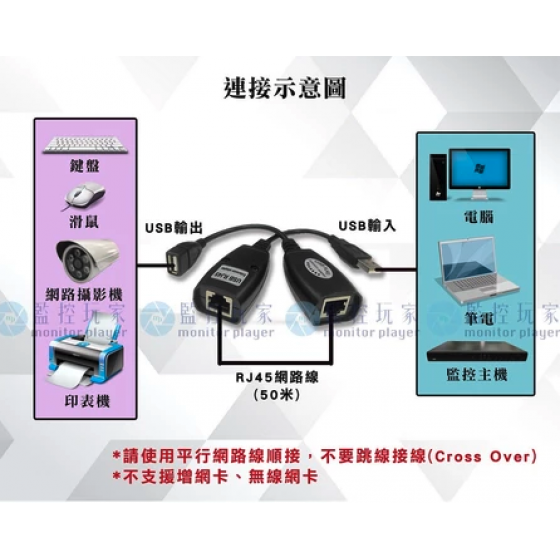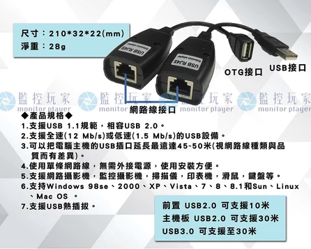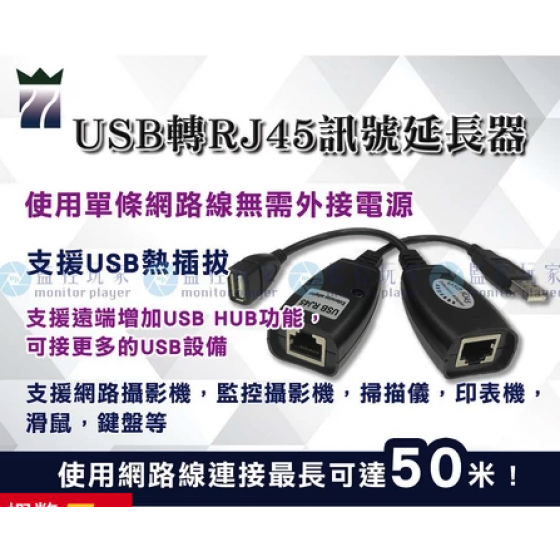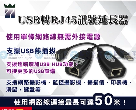 3.可以把電腦主機的USB插口延長最遠達45~50米(視網路線種類與品質而有差異)。