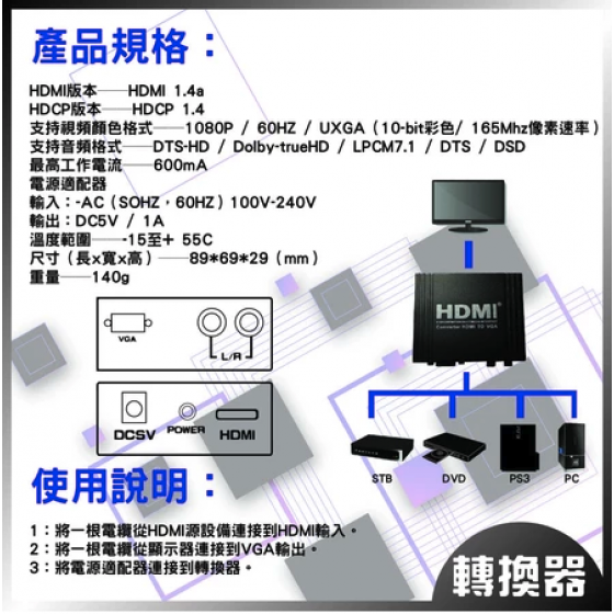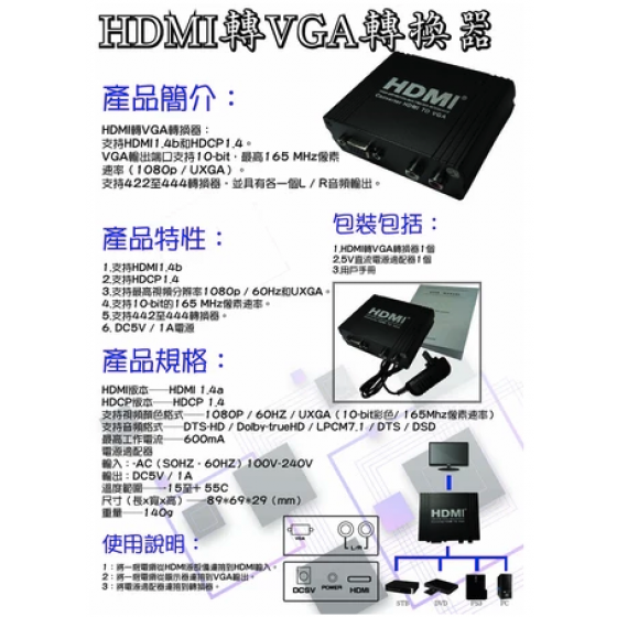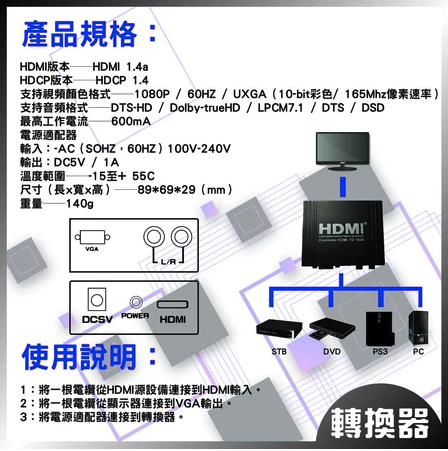 HDMI轉VGA轉換器: