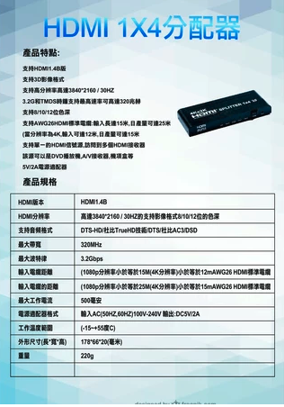 ✑支持高分辨率高達3840X2160 / 30HZ