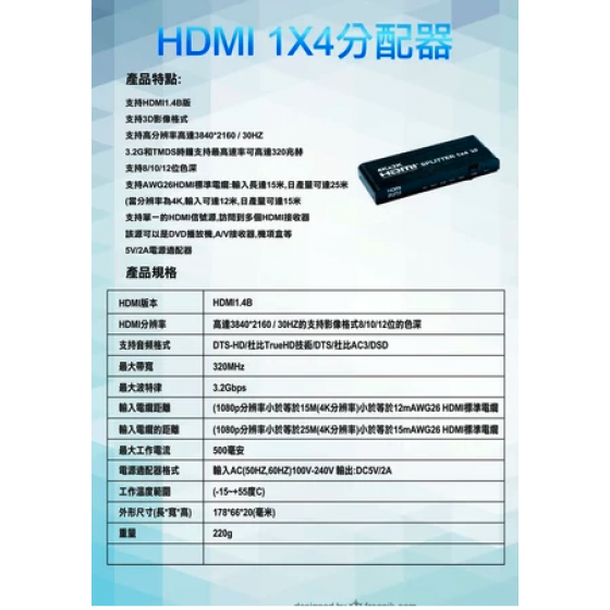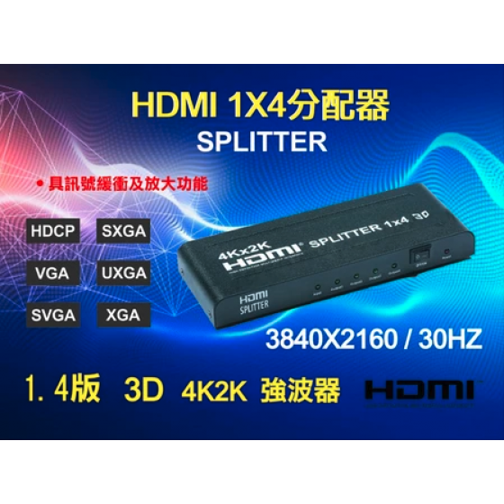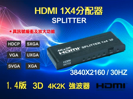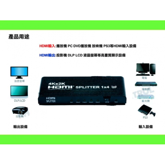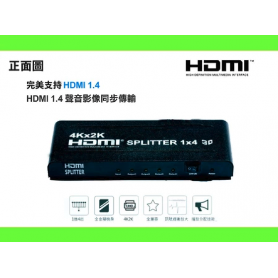【監控玩家】一進四出 HDMI 分配器1.4b HDMI Splitter強波器 3D 4K2K 1進4出